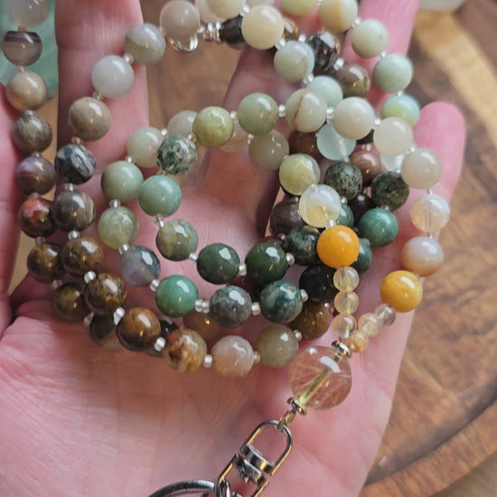 - Focal & Accent Beads: A stunning and rich combination of carefully selected gemstones, including African Turquoise, Amazonite, Pietersite, Indian Agate, Mint Jade, African Jade, Botswana Agate, Montana Flower Agate, Chrysanthemum Coral, and Golden Quartz.